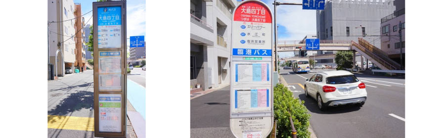 臨港バス・市バスともに大島4丁目バス停下車にて徒歩1分で当院に到着です。