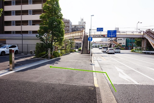 大島4丁目歩道橋を渡り目の前のマンション・シティハウス川崎富士見公園の1階となります。