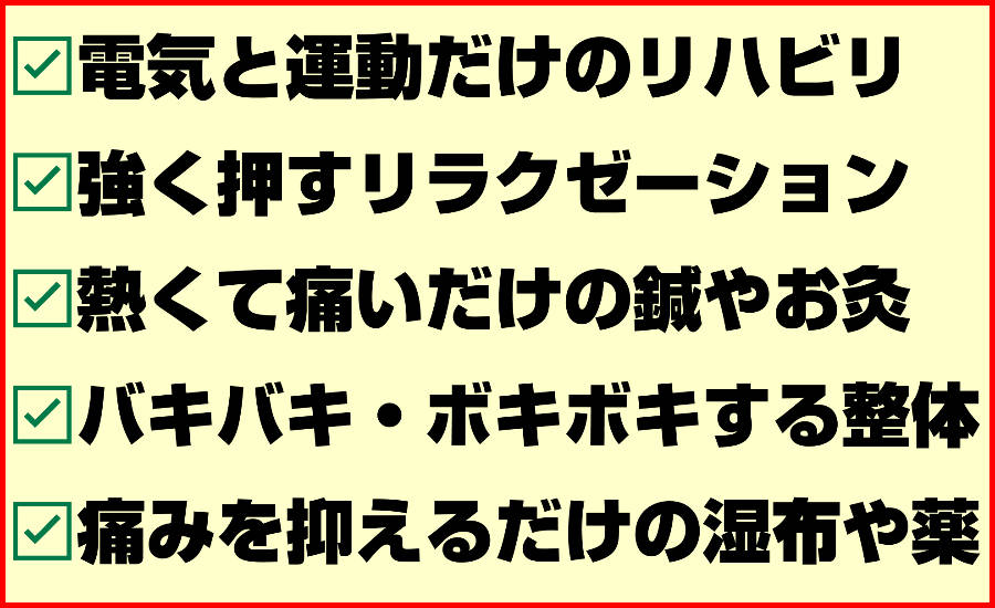 ☑川崎市にある治療院で何度施術を受けても楽にならない方