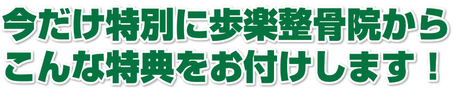 さらに、この特別体験には特典が付いています。歩楽整骨院では整骨院の名前の通り、歩行時の痛みを無くす為の施術もおこなっています。