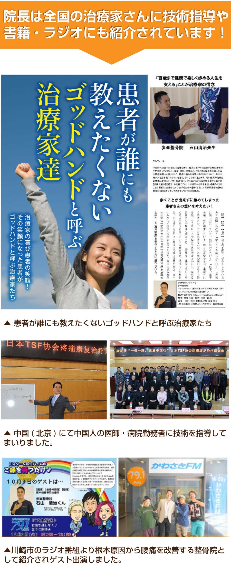 はじめまして。神奈川県川崎市にある慢性症状・神経痛・痺れの改善専門院、歩楽整骨院院長の石山清治ともうします。