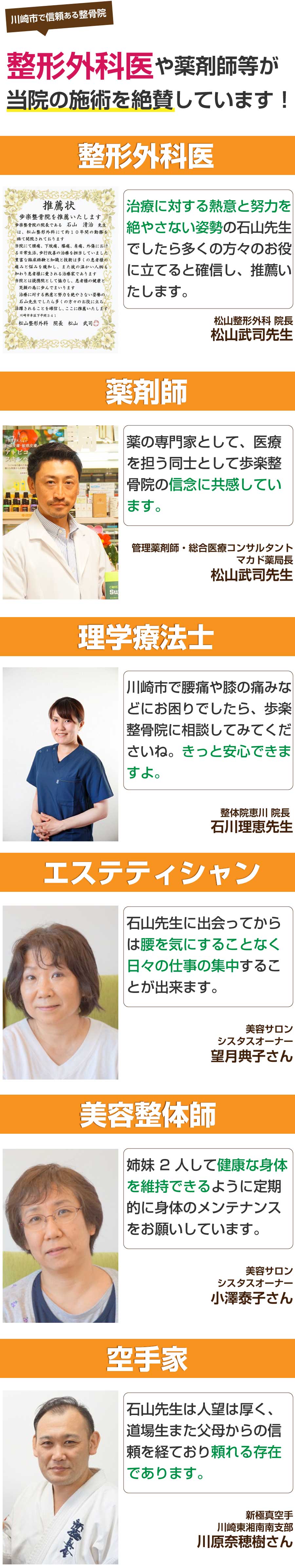 『治療の後は立ち仕事も歩くのも楽になります。まだまだ現役で仕事をしていきたいので今後もお世話になります。』
